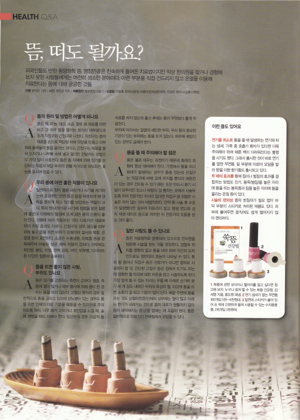 퀸 5월호에 이종훈 원장님이 뜸치료에 대해 도움말 주셨습니다.