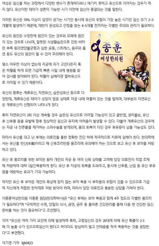 [세종포스트 08/02] 유산 후 몸조리 위한 보약, 한의사와 상담 후 신체 상태 고려해 복용해야