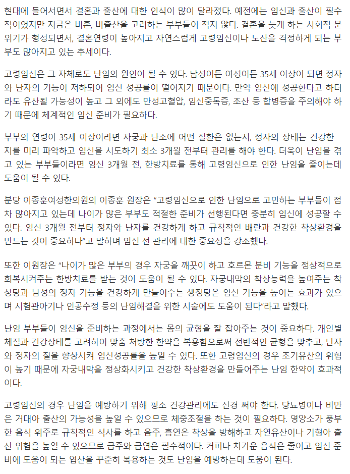 [금강일보 03/18] 고령임신 난임한방치료로 미리 준비하는 것이 효과적