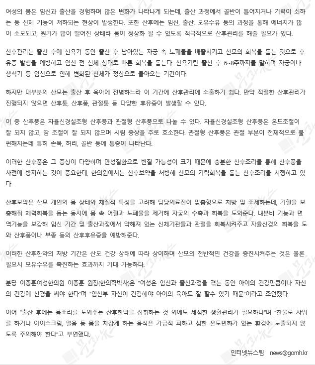 [문화뉴스 07/19] 여성의 산후몸조리, 산후보약으로 산후풍 예방해야
