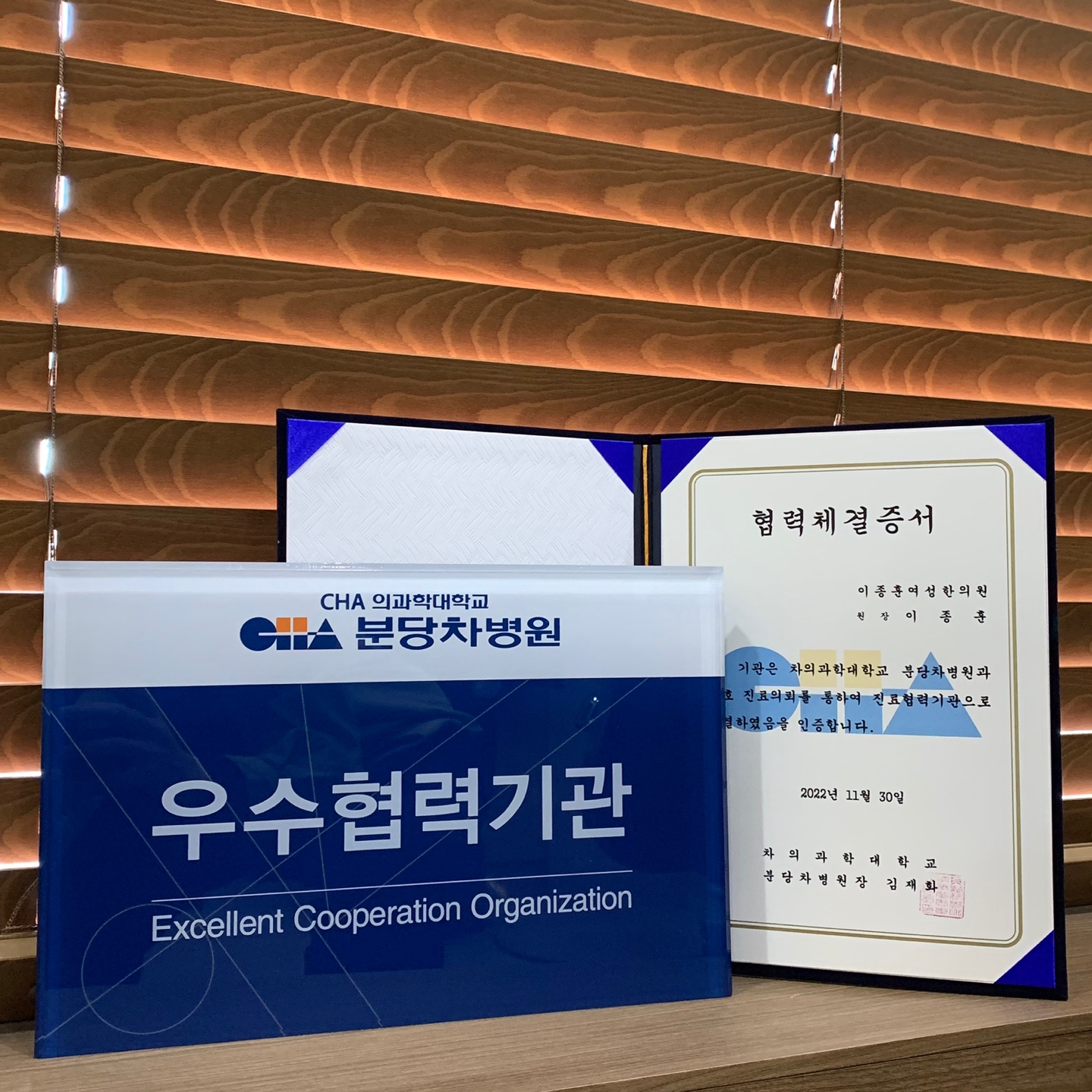 이번에 저희 한의원이 2022년 차의과대학교 분당차병원 협력기관으로 결정되었음을 알려드립니다.